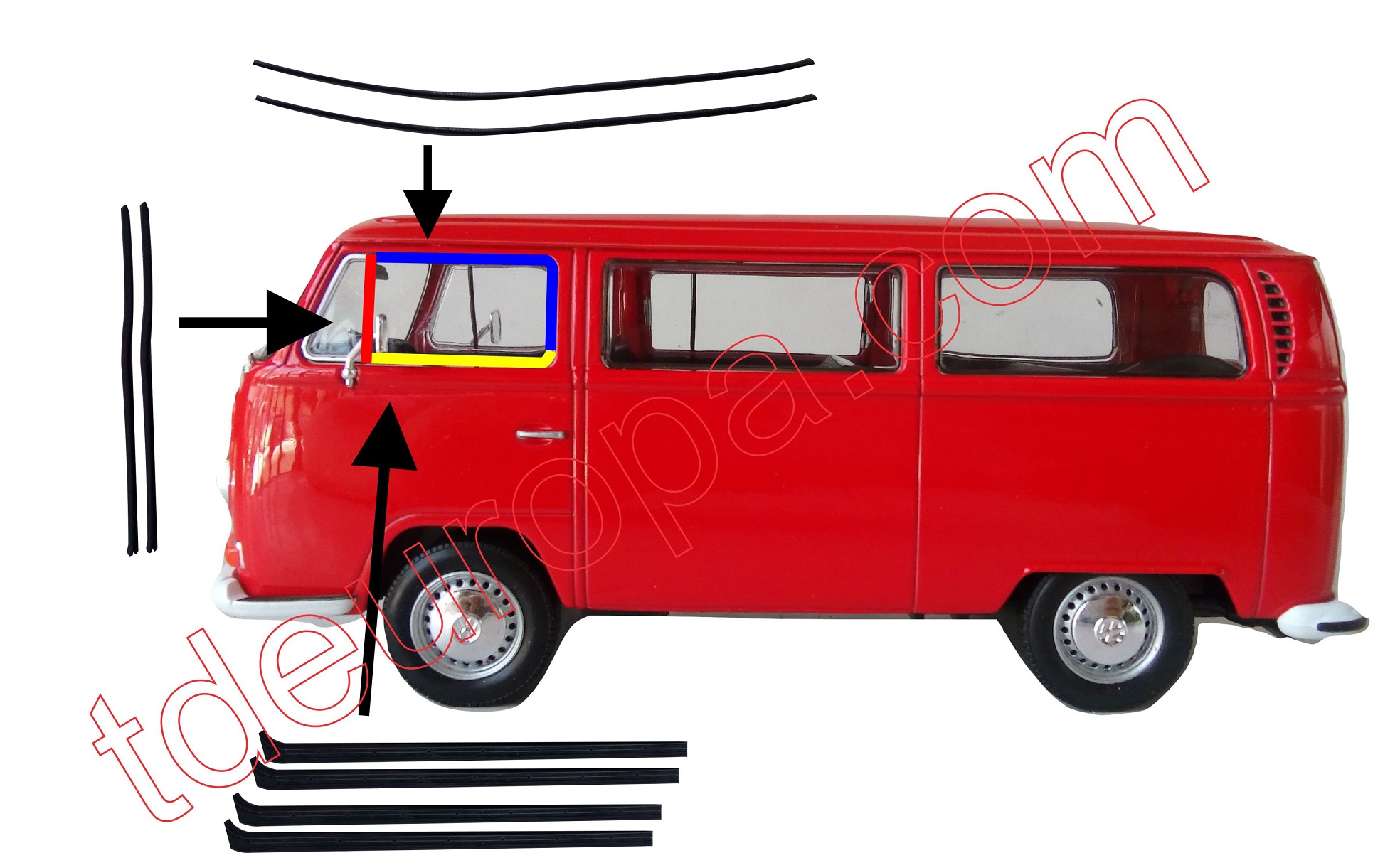 Juego Cañuelas De Vidrio Vw Kombi 67-04 T2 “VW Bus 67-79 Scrapers seal set”