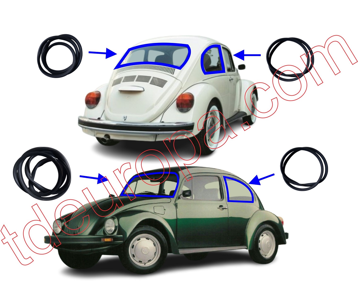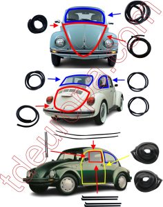 Juego Empaques De Vidrio Vw Sedan Vocho T1 74-04 “Mexican Beetle Window Seals Set”